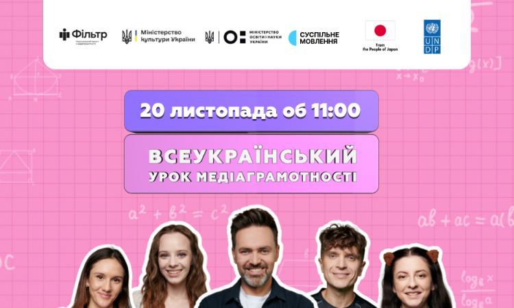 Всеукраїнський урок з медіаграмотності реалізовує національний проєкт з медіаграмотності «Фільтр» Міністерства культури та Суспільне Мовлення у партнерстві з Міністерством освіти і науки України та за підтримки UNDP Ukraine / ПРООН в Україні та фінансування уряду Японії.